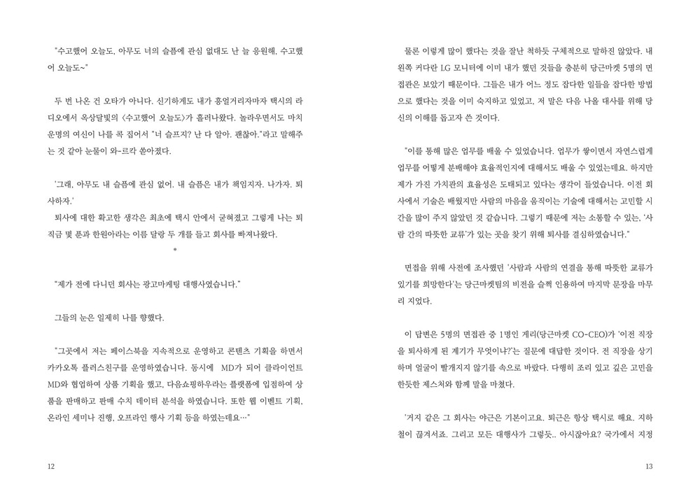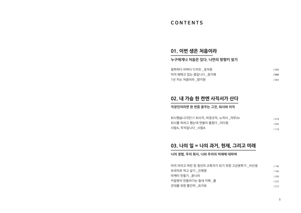 <직장인 공감편>은 11명의 일을 하는 사람들이 자신의 일에 관한 슬프고 행복했던 여러 감정들을 담았습니다.