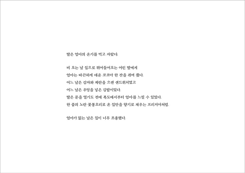 누군가에게는 경험해 보지 못한 어린 시절이거나, 받아본 적 없는 사랑이라고 해도 훗날 내가 줄 수 있는 사랑에 대한 책으로 읽히길 바랍니다.