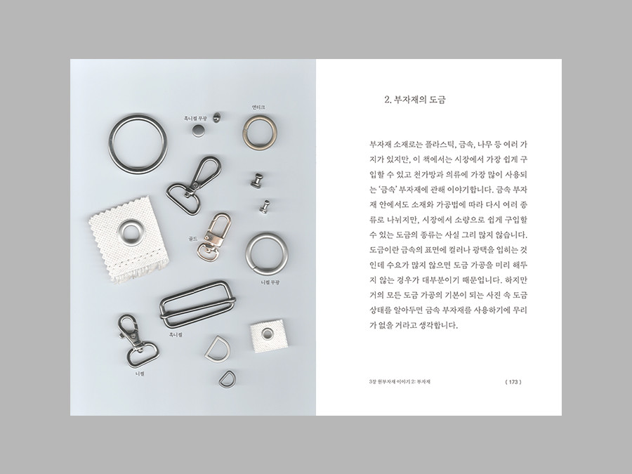 ∙ O링과 D링 (O-ring & D-ring) ∙ 리벳과 솔트레지 (rivet & stud closure) ∙ 지퍼 (zipper)