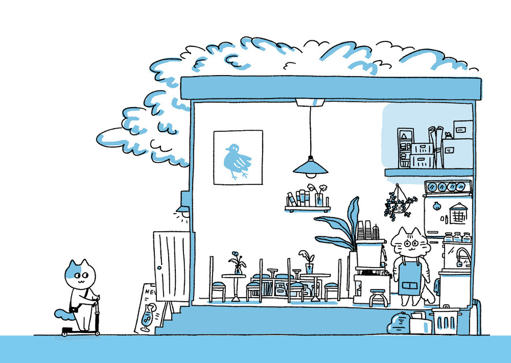 카페라는 공간은 우리에게 만남의 장소이자 혼자만의 시간을 보내는 장소 등 사용하는 사람에 따라 여러 모습을 갖습니다. 그 공간에서 벌어지는 소소한 에피소드로 미이의 일상과 그 안에서 벌어지는 인간관계 등을 보여드리고 싶었어요. 미이의 독백은 어찌 보면 철학적일 수 있겠지만 한 번쯤 깊게 생각해볼 주제들을 함께 이야기해보고 싶어 질문형식으로 썼습니다.