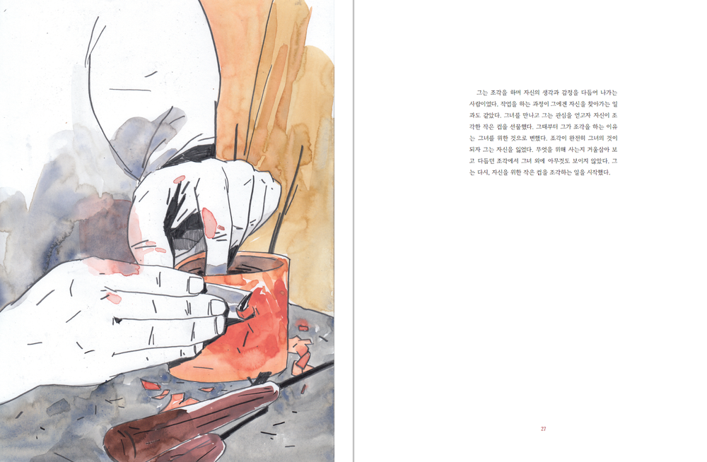 책은 한 점의 그림과 그 안에 담긴 이야기가 순차적으로 담겨 있고, 뒤엔 인범님의 짧은 에세이와 재은의 <이해되지 못한 이유로 울었던 날들에 대하여>를 수록했습니다.