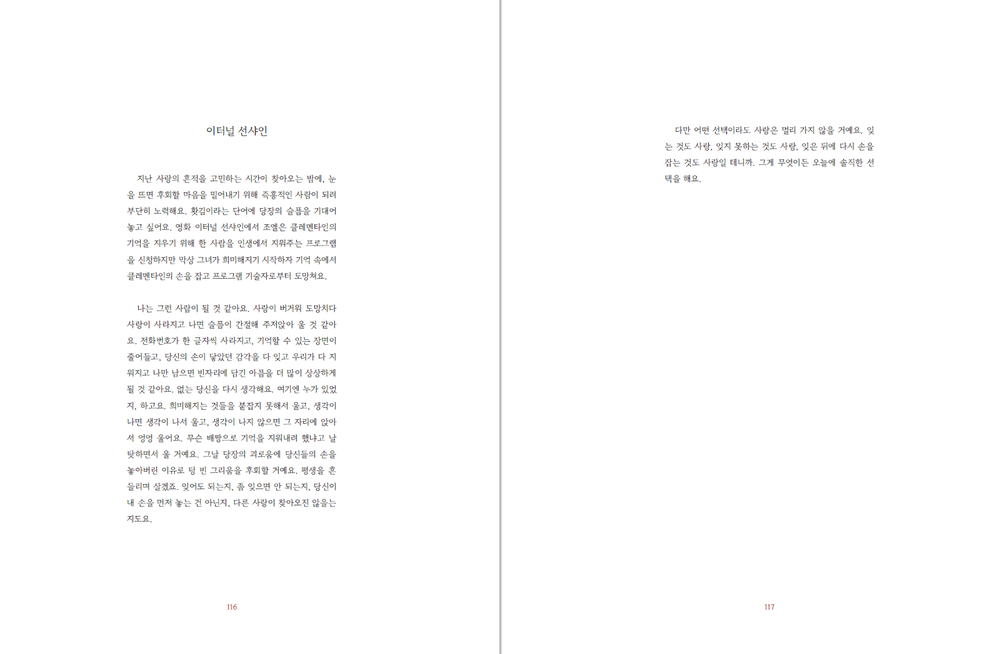 책의 말미에는 사랑을 잊게 하는 물 망정수를 두고 인범과 재은이 쓴 글이 담겨있습니다.
