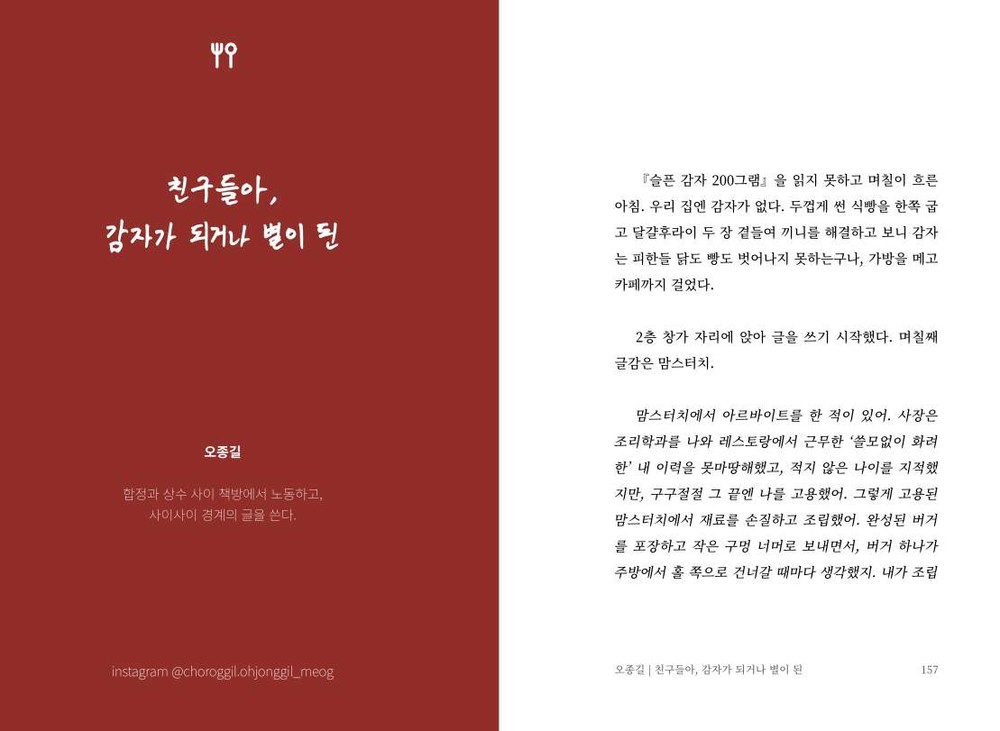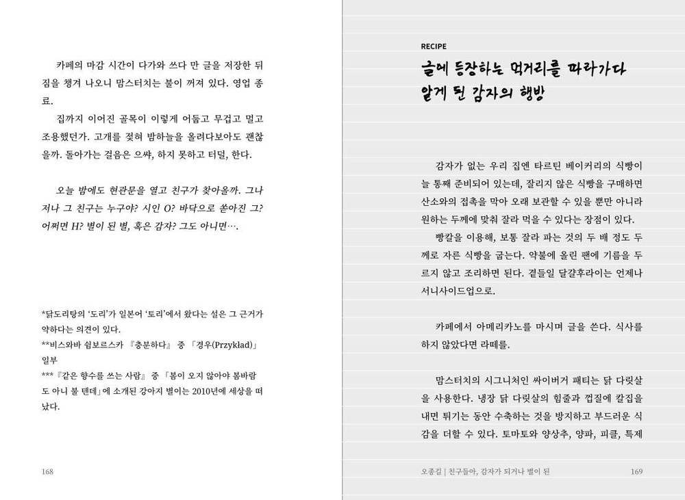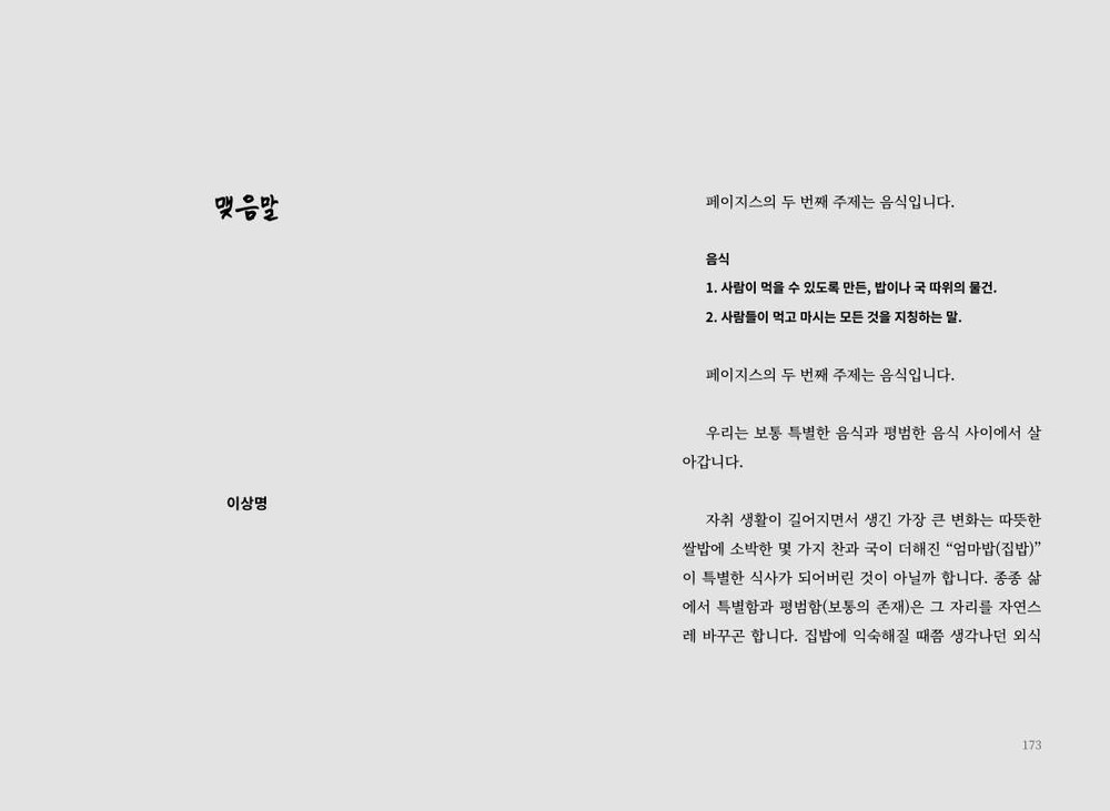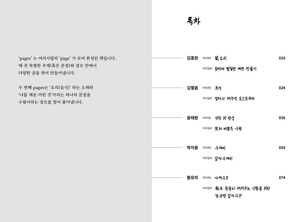 두 번째 pages는 ‘요리(음식)’라는 소재와 ‘나를 채운 어떤 것’이라는 하나의 문장을