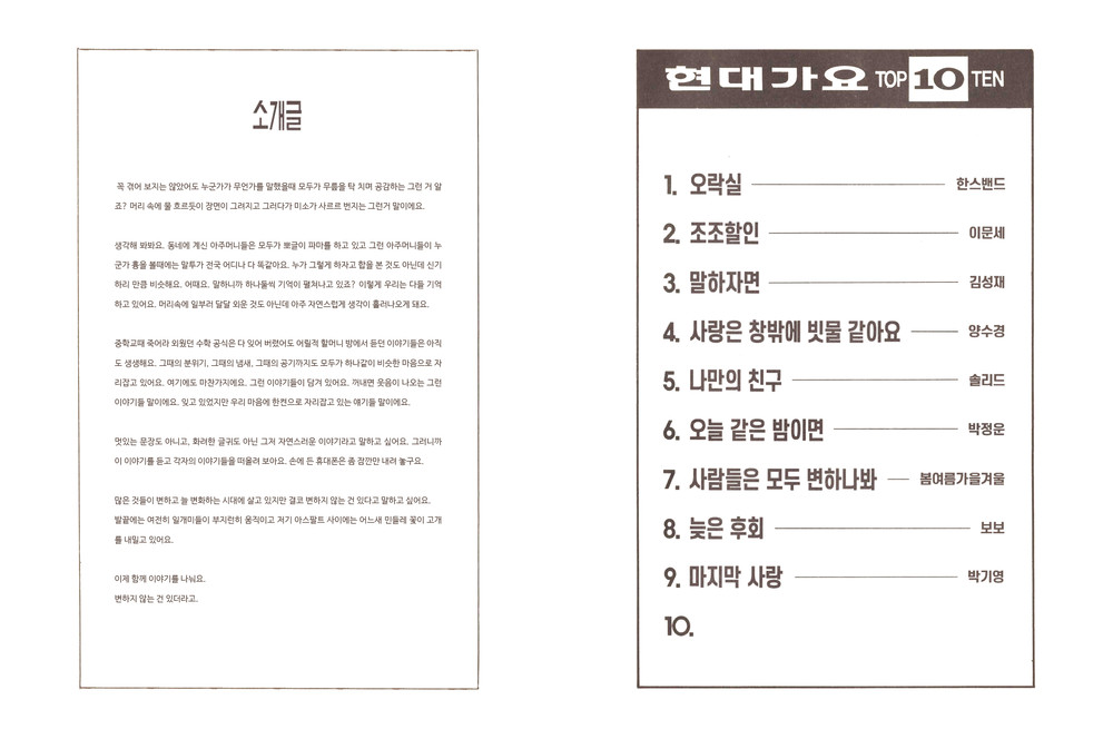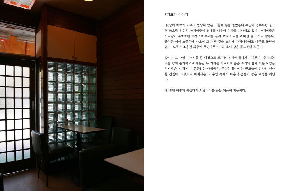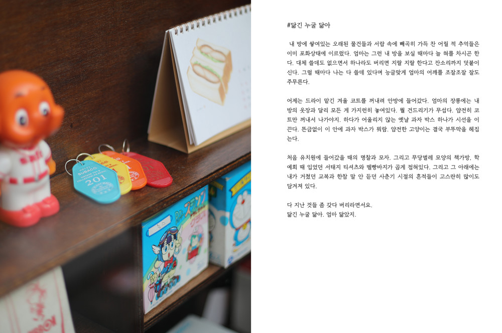 그때의 분위기, 그때의 냄새, 그때의 공기까지도 모두가 하나같이 비슷한 마음으로 자리잡고 있어요. 여기에도 마찬가지에요. 그런 이야기들이 담겨 있어요. 꺼내면 웃음이 나오는 그런 이야기들 말이에요. 잊고 있었지만 우리 마음에 한켠으로 자리잡고 있는 얘기들 말이에요.