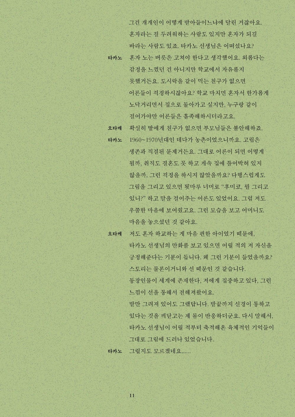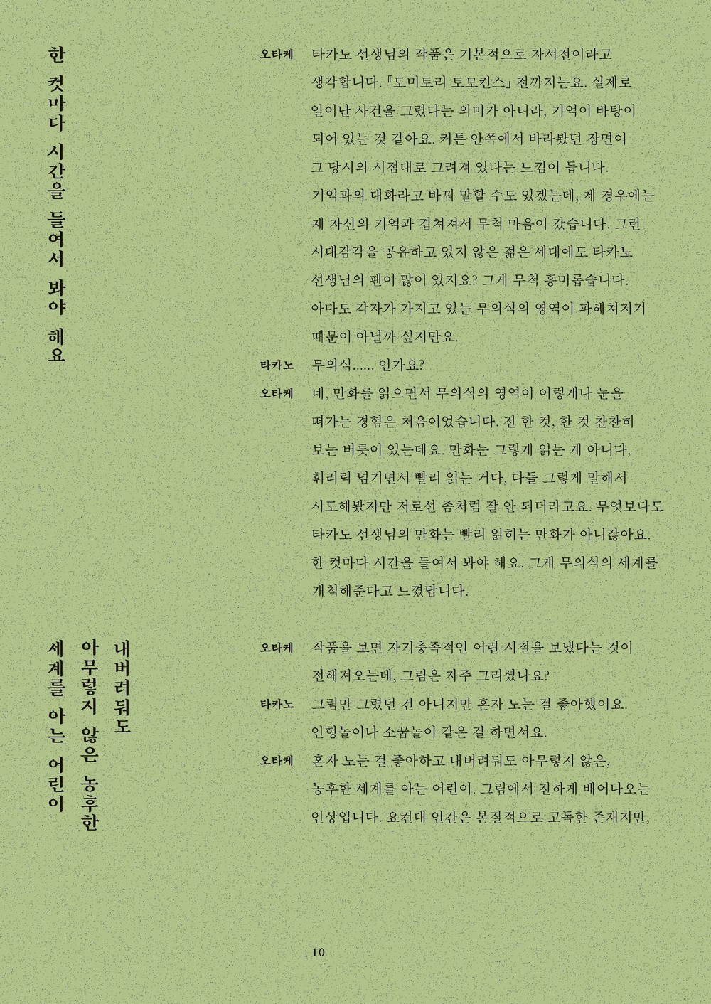 한국어판 특징: 한국 독자에게 보내는 타카노 후미코의 인사가 짧은 글과 그림으로 실려 있습니다. 이 인터뷰 책자는 일본에서도 현재 구할 수 없고, 저자의 뜻에 따라 한국어판 역시 초판 1000부만을 간행.