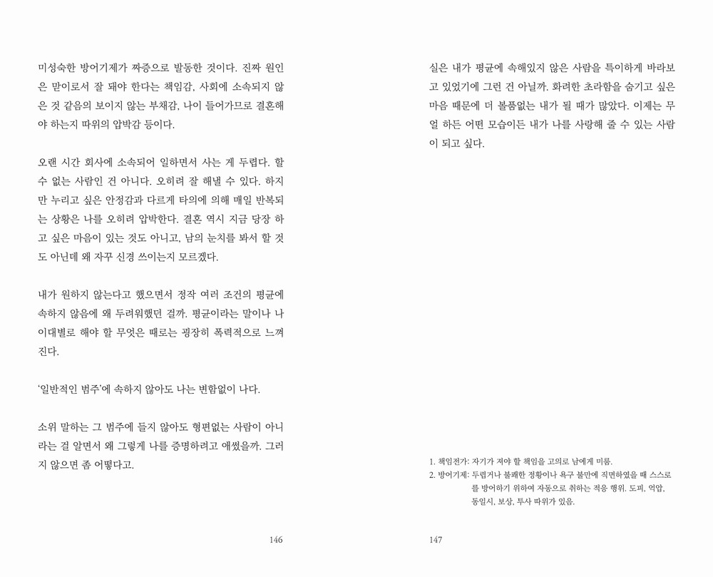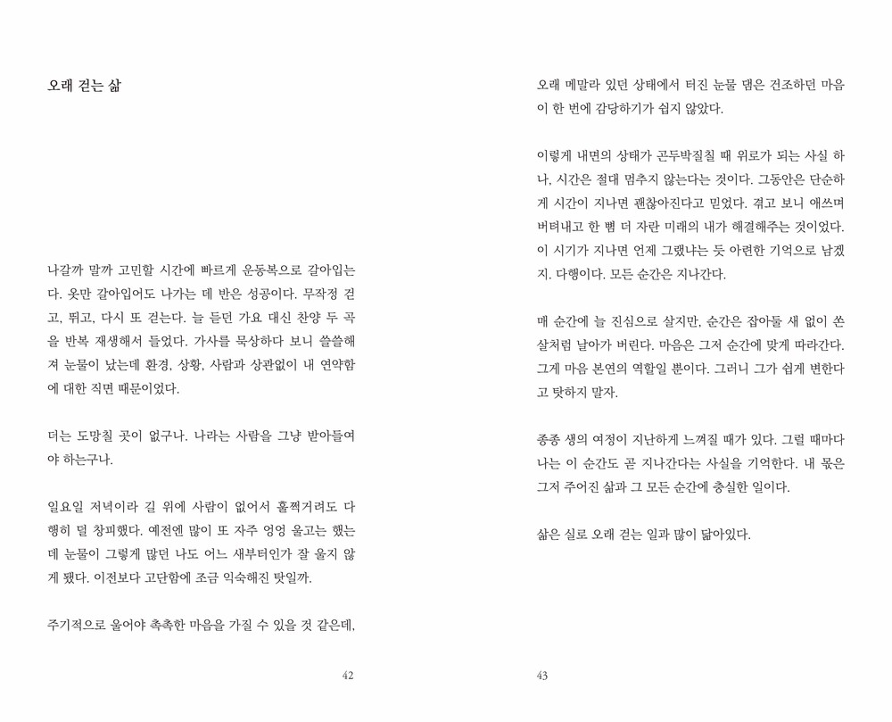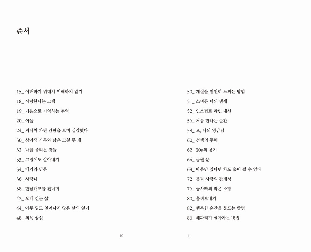 : 한국에만 존재하는 빠른 년생으로 7살에 입학한 학교 기준 나이 서른, 보통 한국 나이 서른, 만 나이 서른, 총 세 번의 서른을 통과하며 마주한 일상생활을 기록한 책입니다. 제 삶의 속도를 이제는 인정하고 받아들이고 싶어서 애쓰는 이야기이기도 합니다. 과거지향적인 태도를 지녔던 제가 현재진행형인 사람으로 거듭나기 원하면서, 지속 가능한 평범한 일상을 살아내고 싶어졌습니다. 특별한 사람의 이야기가 아닌 주변에 있을법한 사람의 이야기가 읽는 분들에게 더 큰 위로로 닿을 수 있기를 소원합니다.