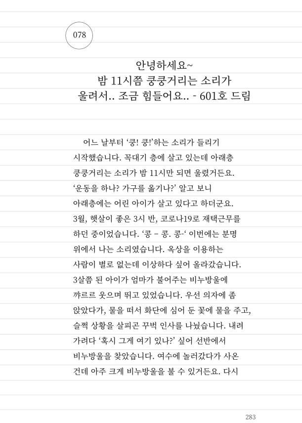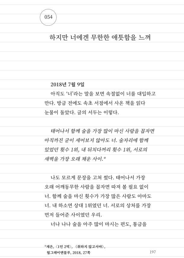 네 번째 pages는 ‘부치지 않은 편지’이라는 하나의 말로