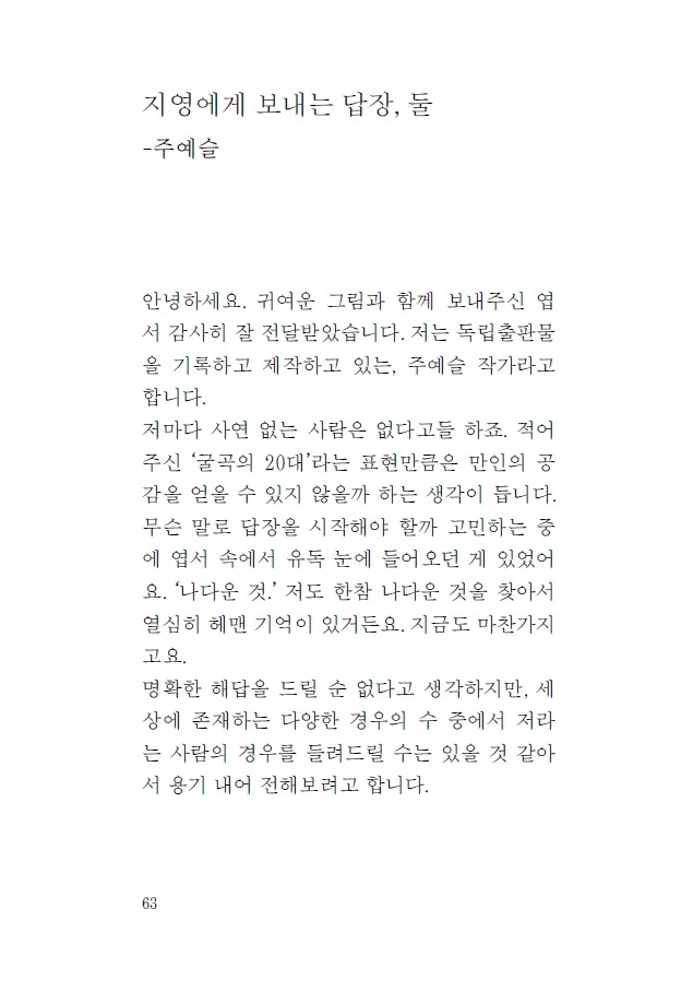 그리고 한 가지의 시선이 아닌, 나이도, 직업도, 생활도 다른 작가님들이 서로 다른 시선으로 답장을 보내드려,