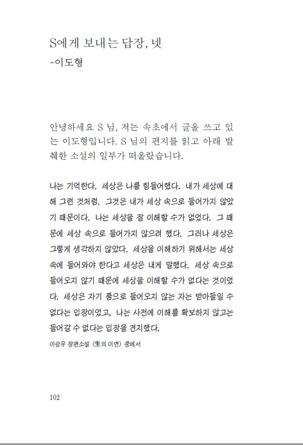 답장을 보낸 작가님들은 소설, 에세이, 시 등 다양한 장르와 다양한 나이로