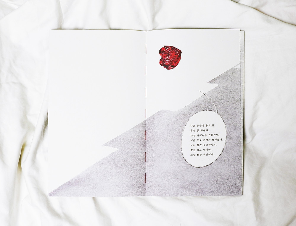 책 소개: <빨간, 무엇>은 굴러다니는 빨간 포장지로부터 생겨난 이야기 파편들을 나열한 가상 에세이입니다.