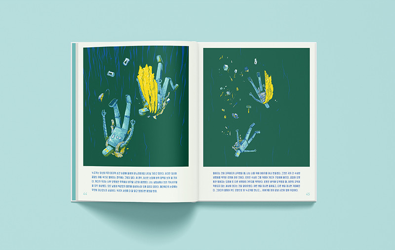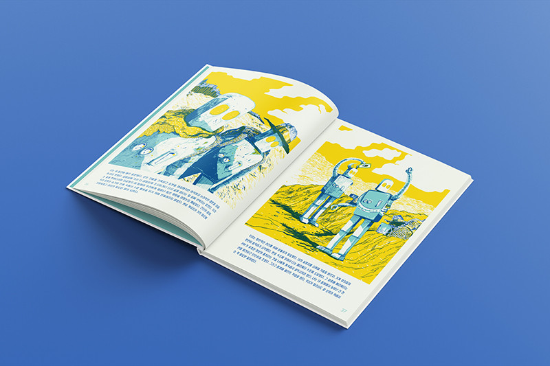 이 혼란한 시국에 프라하의 작은 아파트에 갇혀 ‘로봇’을 만들며 나는 내내 묘한 기분에 사로잡혔다. 인류가 멸망한 뒤 그 흔적을 좇는 로봇의 이야기에서 어떠한 기시감이 느껴져서이다. 영화나 소설 속에서 상상하던 일들이 눈앞에 펼쳐진 지금, 어쩌면 ‘로봇’의 세계가 현실이 될 날도 멀지 않았다는 불길한 예감과 함께. 다행히 격리 기간 동안 느낀 불안은 두 로봇과 여행을 함께 하며 점점 옅어졌다. 그들이 벌이는 흥미진진한 모험 속에서 인간이 사라진 지구의 모습이 마냥 어둡게만 그려지지 않았기 때문이다. 그렇게 탐험에 동참해 인류의 발자취를 쫓다 보니 문득 연이은 질문들이 떠올랐다.