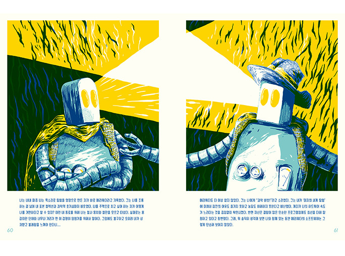 딱딱한 기계라고는 믿어지지 않는 사랑스러운 캐릭터와 재치 넘치는 대사. 그리고 장면마다 작가가 심어 둔 단서를 바탕으로 보물찾기하듯 인류의 비밀을 파헤치는, 숨은 재미가 가득한 SF 그래픽 노블이다.