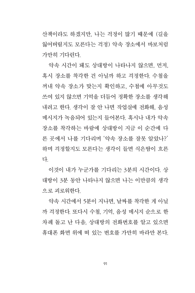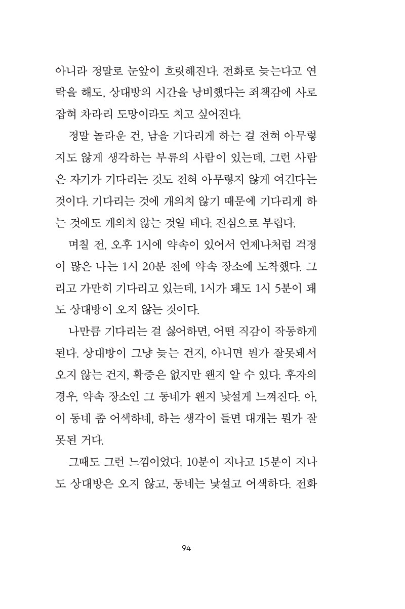 삼십 대 때 쓴 돈 역시 분명 앞으로 어떤 식으로든 내게 의미를 갖게 될 것이다. 아직은 그것을 느끼지 못하지만, 마흔도 중반을 훌쩍 넘긴 어느 날 문득 알아차리겠지. 내가 가장 두려워하는 건, 그때 아무 데도 돈을 쓰지 않아 통장에 잔고만 이상하게 쌓여 있는 것이다.- 「어느 하루 (예를 들면 1995년 11월 9일) 5964엔」 중에서