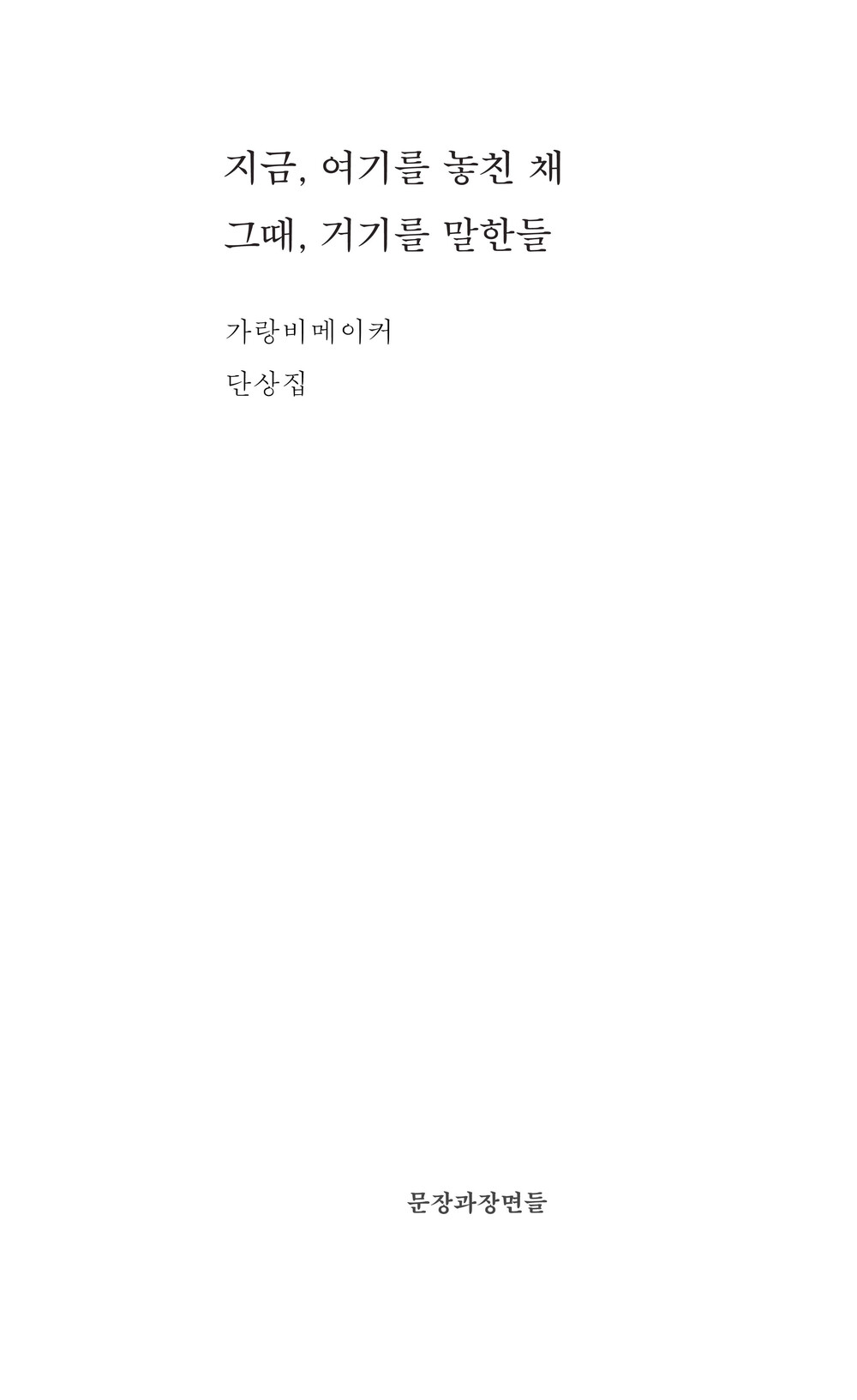 지금, 여기 순간을 스치는 감정과 깊은 사유를 담담히 풀어낸 단상집 『지금, 여기를 놓친 채 그때, 거기를 말한들』은 2015년 출간 직후부터 5년간 품절과 재입고를 거듭하며 동네책방 베스트, 스테디셀러로 등극했다. 수천개의 리뷰와 다양한 매체 인터뷰, 거듭된 재 출간 제의 등을 통해 가랑비메이커의 첫 데뷔작은 대표작이 되었다. 담담하지만 깊이 있는 문체로 수많은 이들의 공감을 받아온 이야기에 더욱 깊어진 5년간의 새로운 문장들이 더해져 더욱 묵직한 개정증보판이 되었다. 첫 집필이 시작되었던 열일곱의 여름부터 스물여덟의 가을까지, 긴 시간이 흘렀지만 여전히 그늘이 있는 이들을 사랑하는 마음으로, 바로 지금, 여기를 충실하기 살기 위한 다짐으로 이야기를 시작하는 가랑비메이커의 새로운 처음으로 당신을 초대한다.