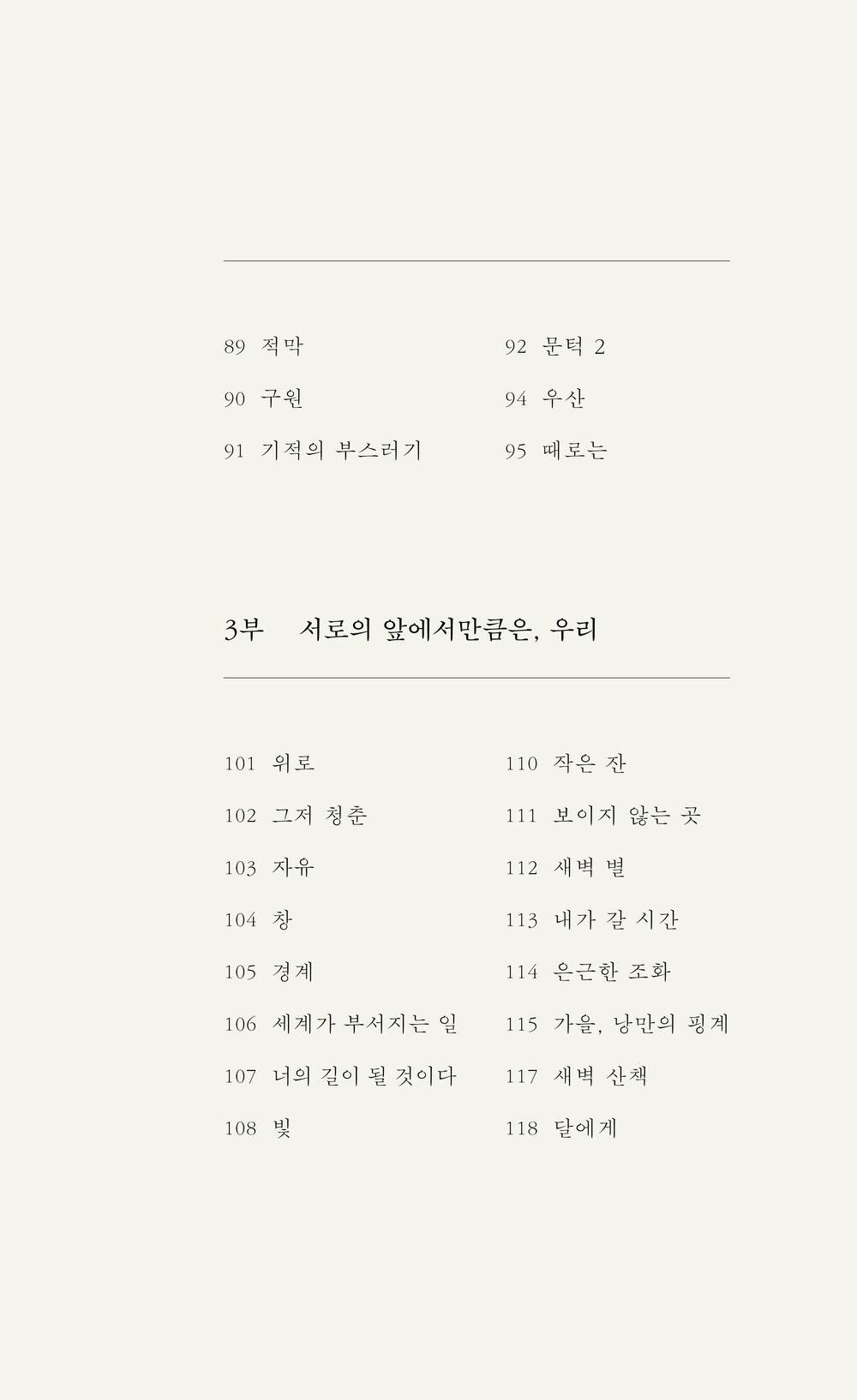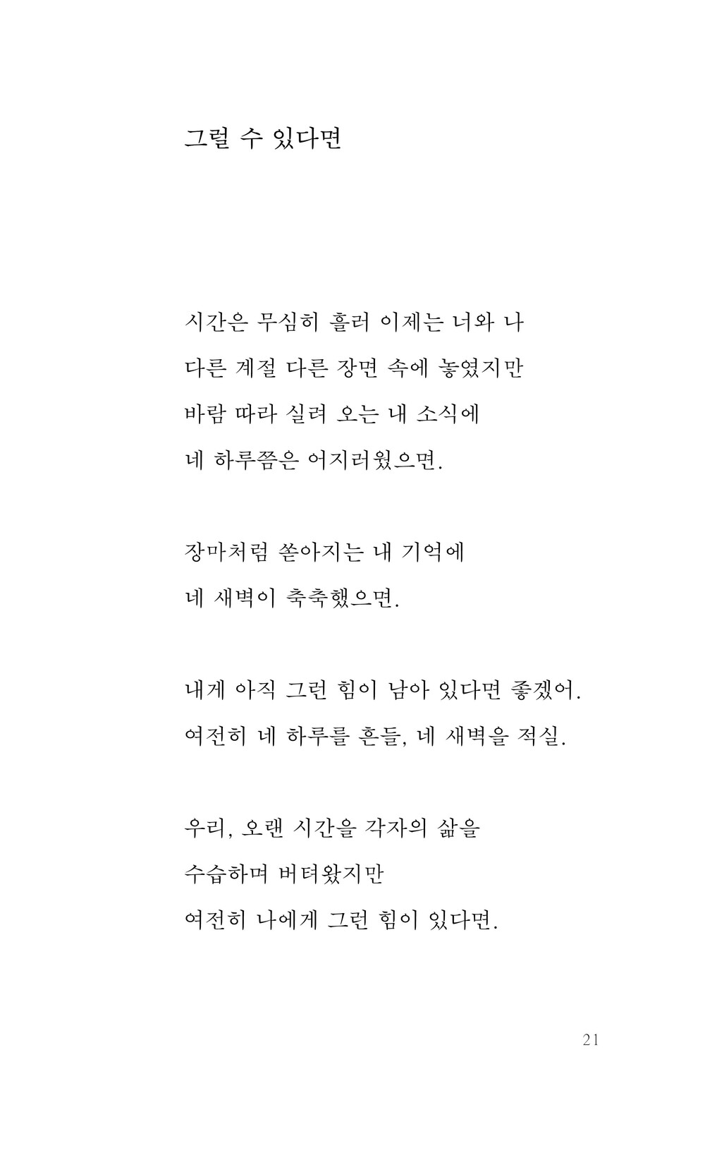 성숙이란 당시에 닿을 수 있는 가장 깊이 있는 순수, 가랑비의 글이 그렇다. 여전히 흔들리고 있는 가랑비의 진심이 당신에게 참된 위로를 전해줄 것이라 믿는다. 제주의 외로운 서점 한 귀퉁이에서 내가 받았던 그 따스한 위로처럼 말이다. - 카이 (뮤지컬 배우)