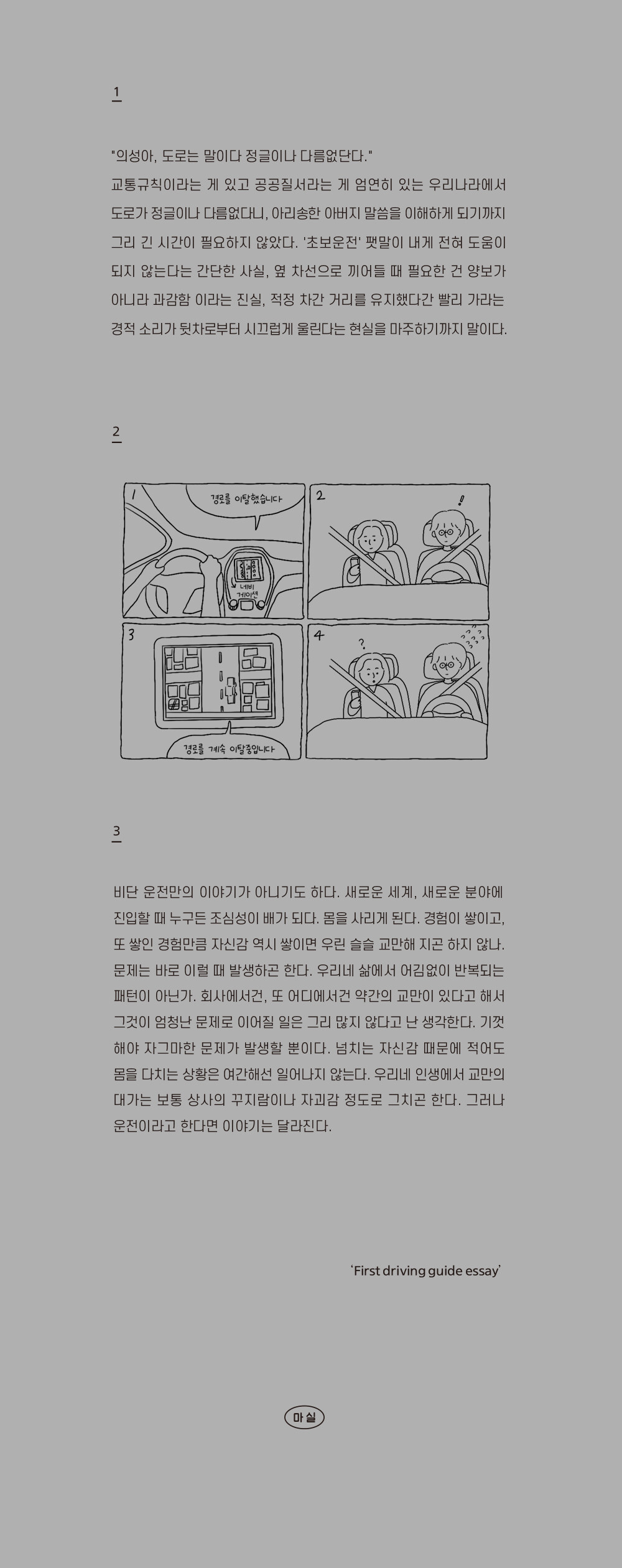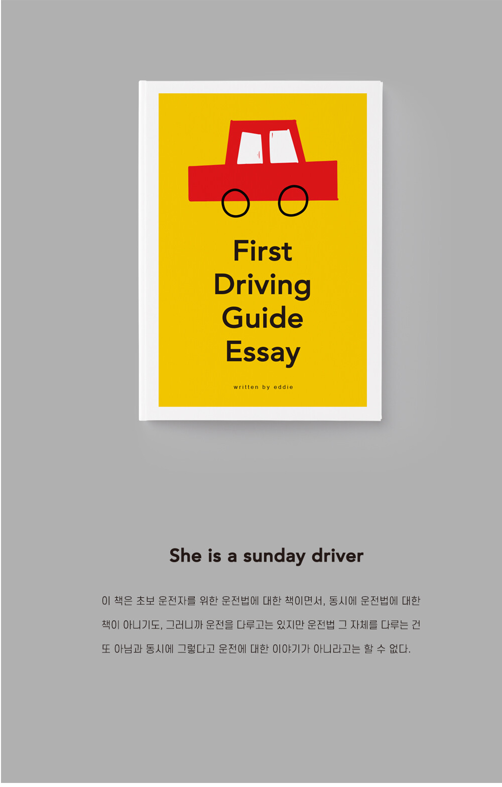 "이 책은 초보 운전자를 위한 운전에 대한 책이면서, 동시에 운전에 대한 책이 아니기도. 그러니까 운전을 다루고는 있지만 운전 그 자체를 다루는 건 또 아님과 동시에 그렇다고 운전에 대한 이야기가 아니라고는 할 수 없다." by 저자이자 평범한 소시민 남편 ‘에디’