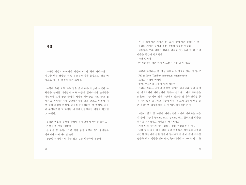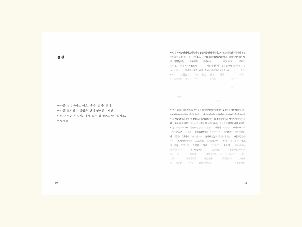 편집, 디자인, 원고, 등 타인의 손을 빌리지 않고 오롯이 혼자 만들어낸 이 책이 많은 사람에게 닿을 수 있기를 바라는 중이다.