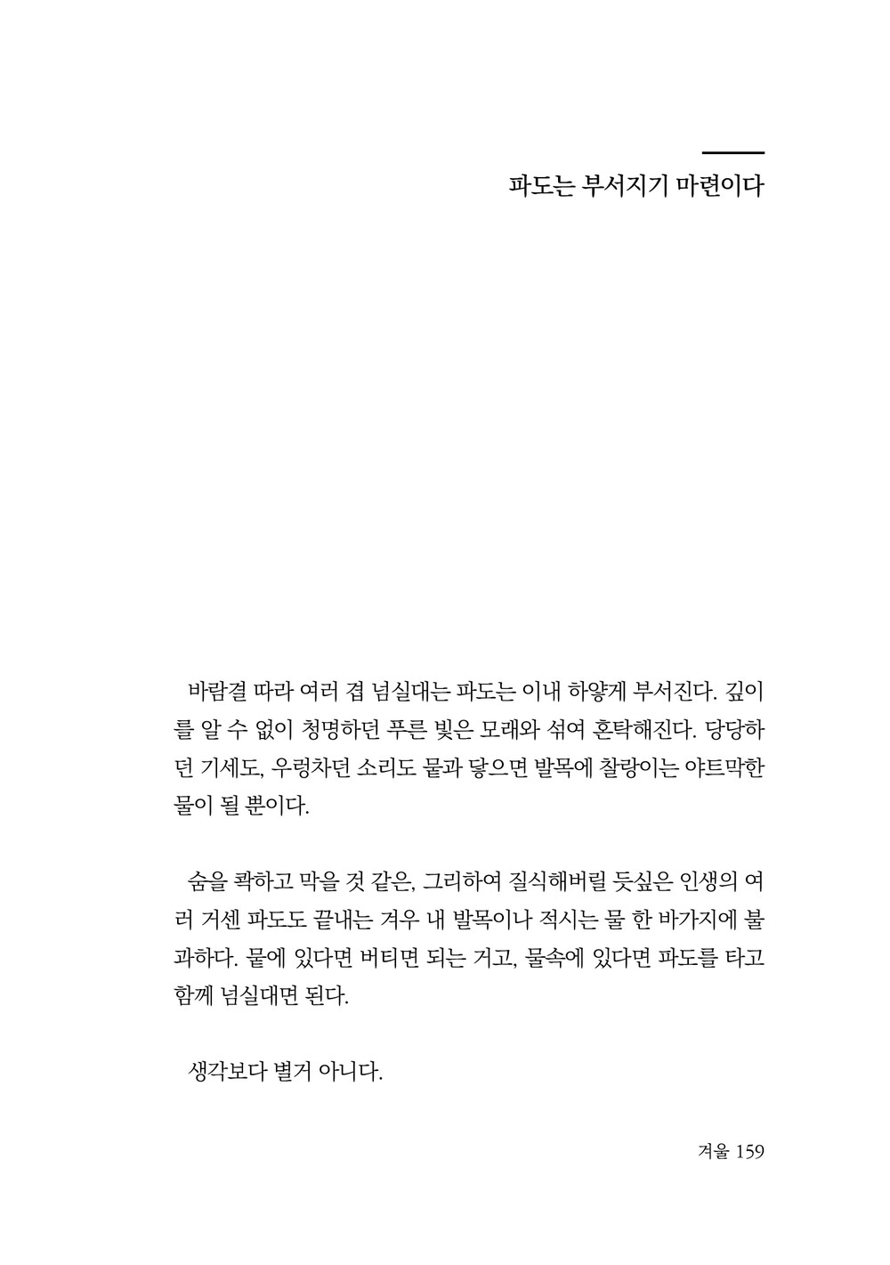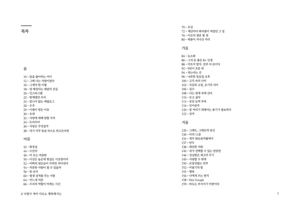 나무의 사계절과 사람의 사계절은 참 많이 닮았습니다. 태어나고 자라고 저물어가는 인생주기만을 의미하는 것이 아닙니다. 여러 형태의 사랑에서 기인한 행복도, 슬픔도 모두 이와 같은 순환을 겪기 마련입니다. 어떤 계절은 우리를 아프게 했고 어떤 계절은 우리를 키워냈지요. 그래서 계절이 변하고 해가 바뀌면 우리의 감성도, 이성도 한 뼘 더 자란다고 생각합니다.