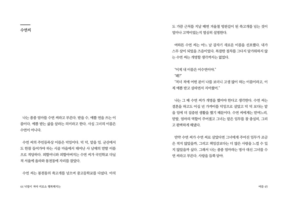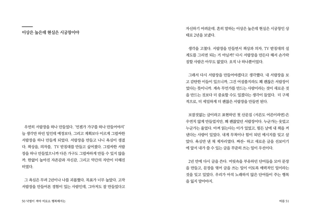 산문집 <서른도 어른이라면>, <낙엽이 져야 비로소 행복해지는>을 썼다.