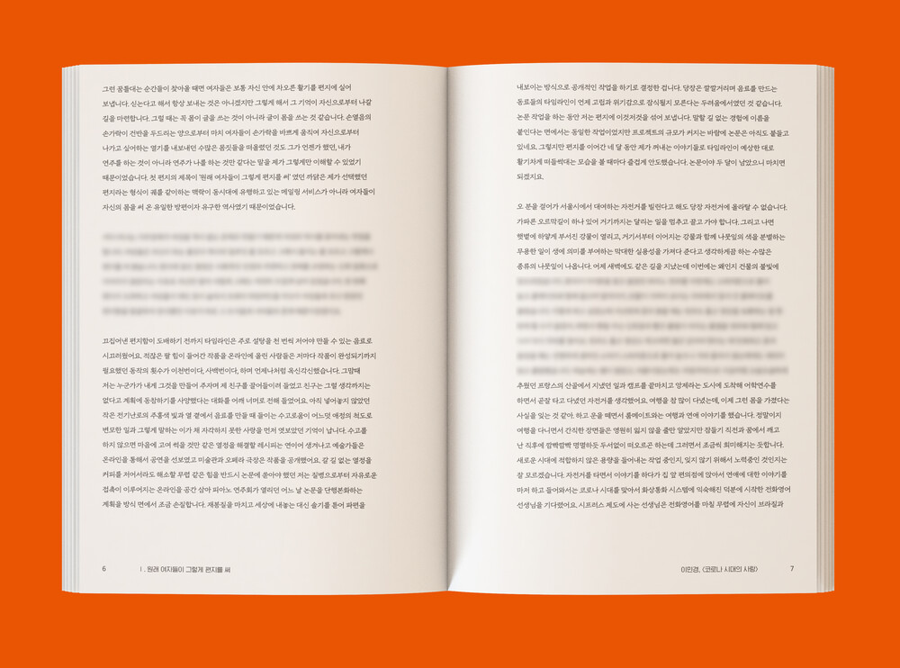 Ⅰ. 원래 여자들이 그렇게 편지를 써<코로나 시대의 사랑> 편지______이민경<10년 전의 나에게> 편지_______최진영<벽장 속 오십 통의 편지와 착한 사람들> 소설과 편지______한정현<편지에 대한 편지, 에 대한> 메타-편지______최리외<매체를 입은 소년들, 소년을 입은 소녀들> 비평______진송