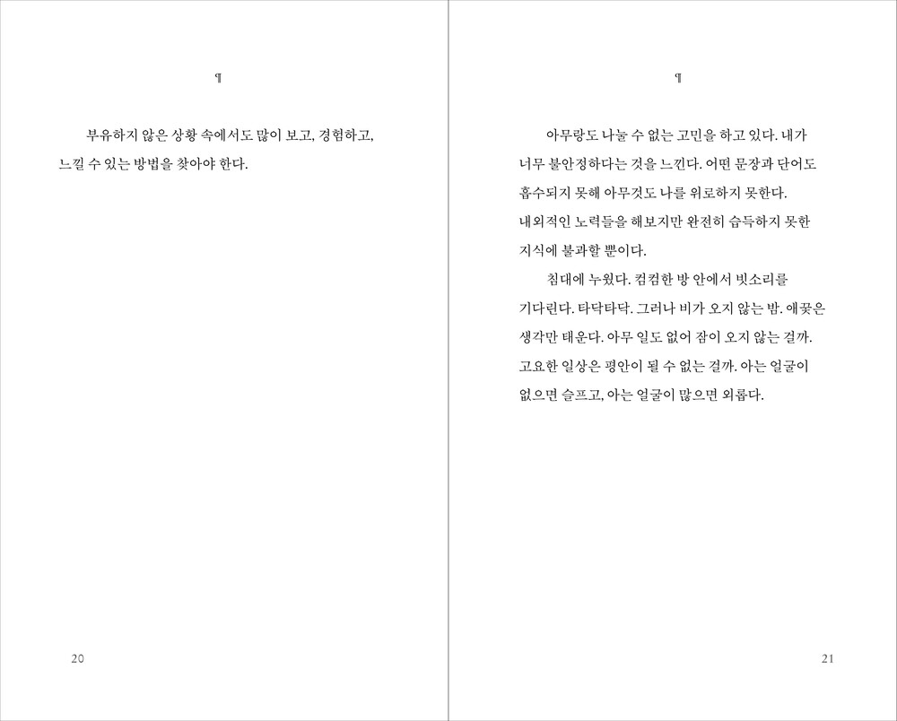 이번 책에서는 잠이 오지 않을 때마다 잠 대신 쏟아지는 기억들을 가지고 글을 썼다.