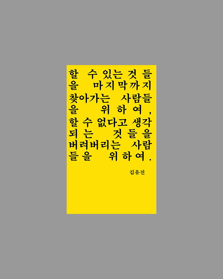 할 수 있는 것들을 마지막 까지 찾아가는 사람들을 위하여 , 할 수 없다고 생각되는 것들을 버려버리는 사람들을 위하여. / 김유진 시집