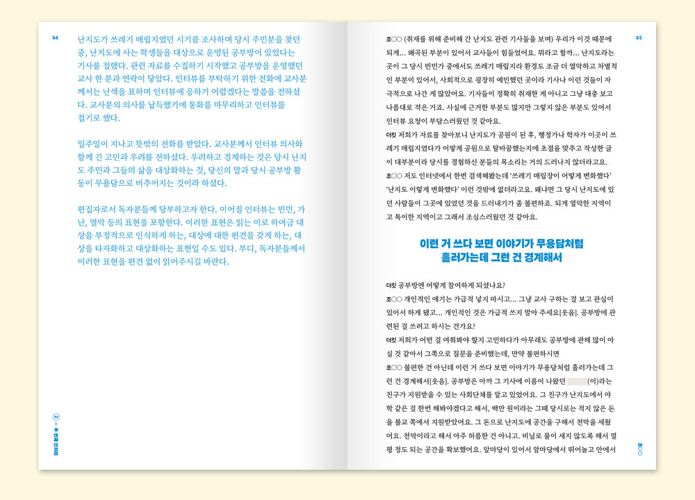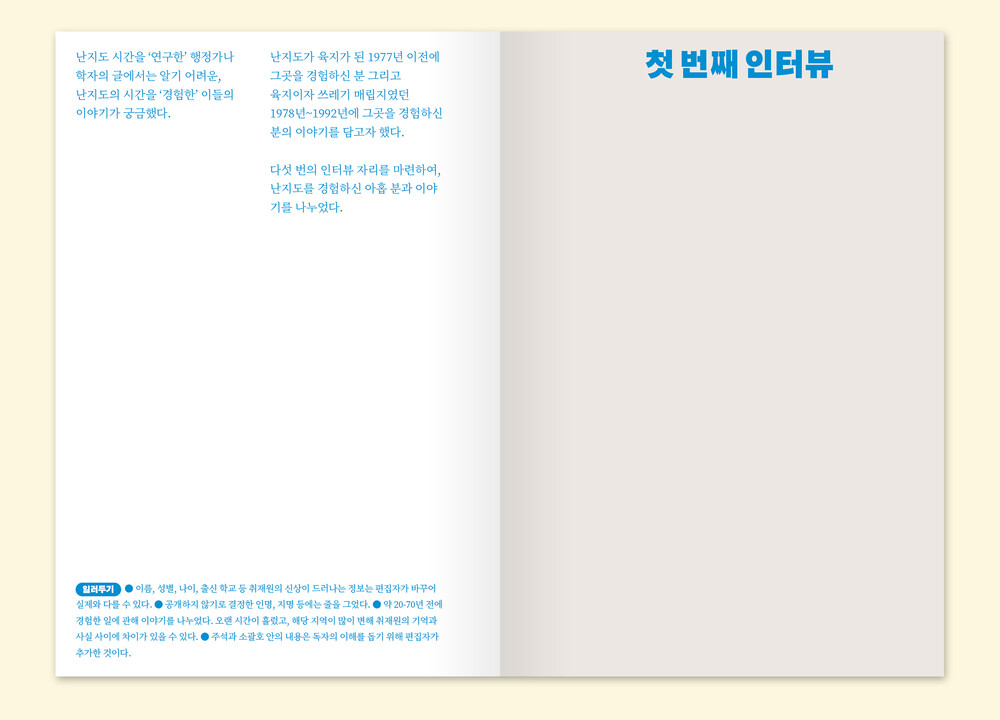 2. 난지도 시간을 ‘연구한’ 행정가나 학자의 글에서는 알기 어려운, 난지도의 시간을 ‘경험한’ 이들의 이야기가 궁금했다.