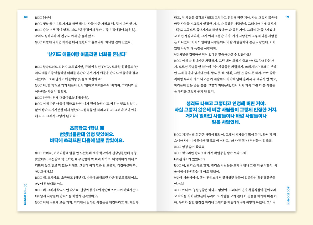 "사실 그렇지 않은데 (난지도 쓰레기 매립지에서 일하는 사람들) 성격이 나쁘다고 바깥 사람들이 인정한 거지. 거기서 일하던 사람들이나 바깥 사람들이나 같은 사람인데."