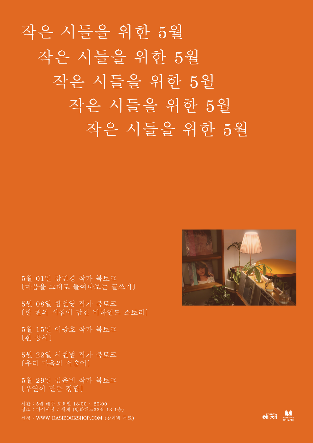 다시서점 8주년을 기념하여 5월에는 매주 토요일마다 북토크를 진행합니다.