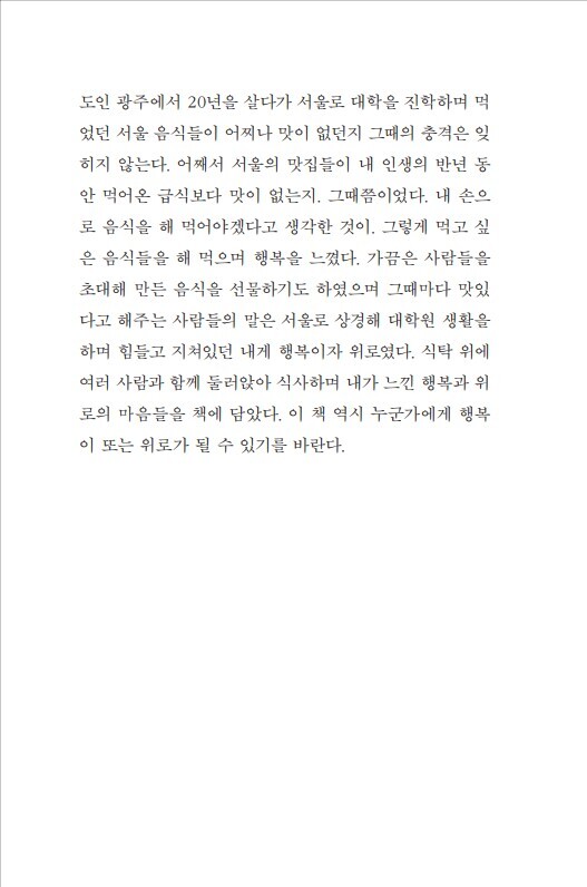 그저 단순히 먹는 것을 좋아하고 잘 먹기만 했던 것이 아니라 음식을 통해 기쁘고 즐겁고 행복했던 순간들, 또 힘들고 슬프지만 위로가 되어주던 순간들, 여태껏 살아온 인생의 수많은 순간들을