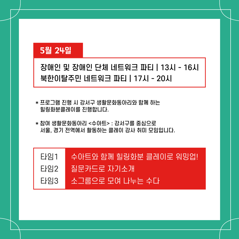 장애인 및 장애인 단체 네트워크 파티 / 13시 - 16시