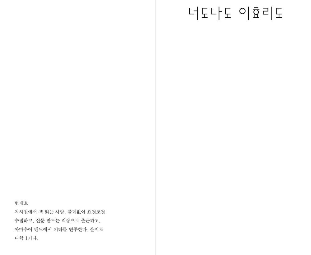 현재호 : 지하철에서 책 읽는 사람. 쓸데없이 요것조것 수집하고, 신문 만드는 직장으로 출근하고, 아마추어 밴드에서 기타를 연주한다. 을지로 디학 1기다.
