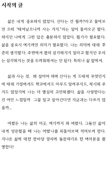 삶에 애착이 없어서 사건이 오면 쉽게 삶을 포기하려 들었다. 이 책에서는 다양하게 주어지는 사건 사고들 속에서 내가 어떤 상태였는지, 어떤 과정들이 있었는지를 나열한다.