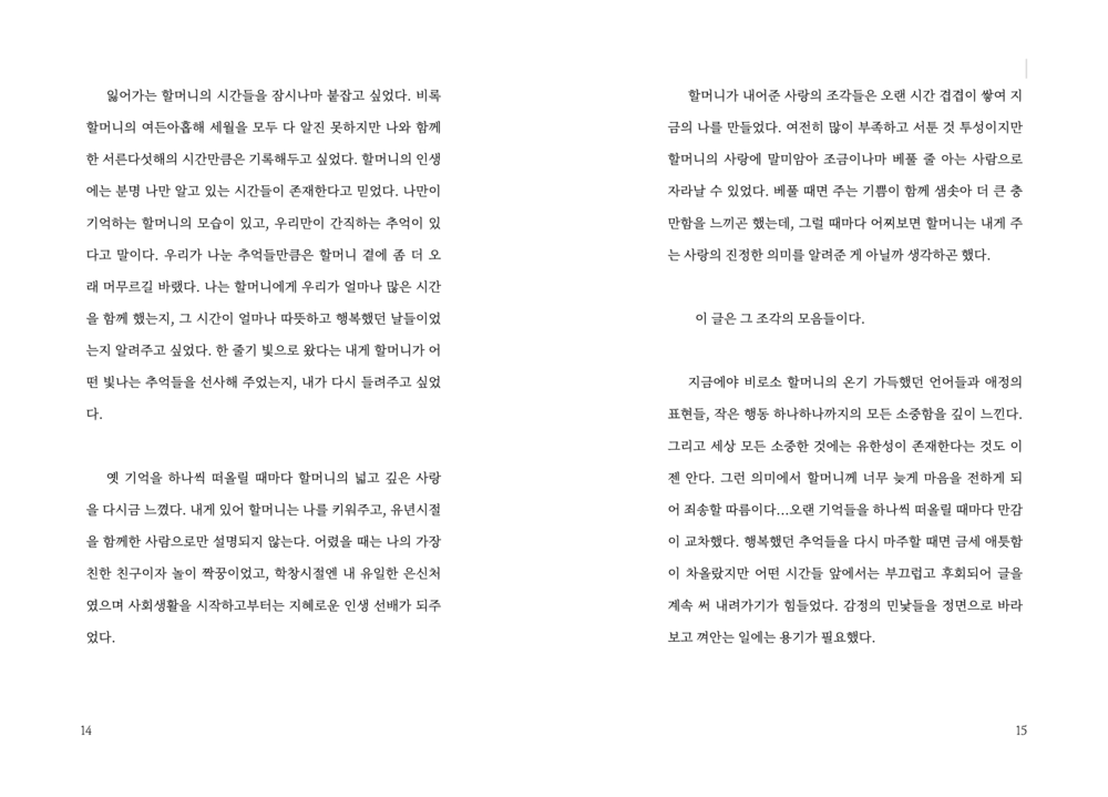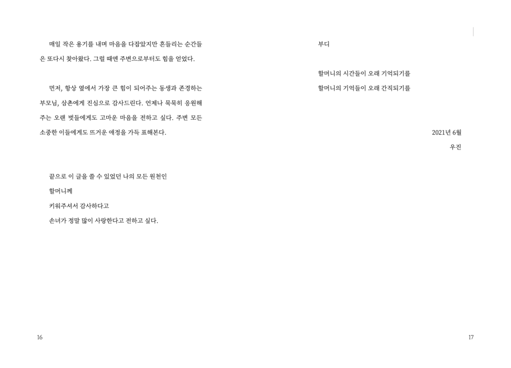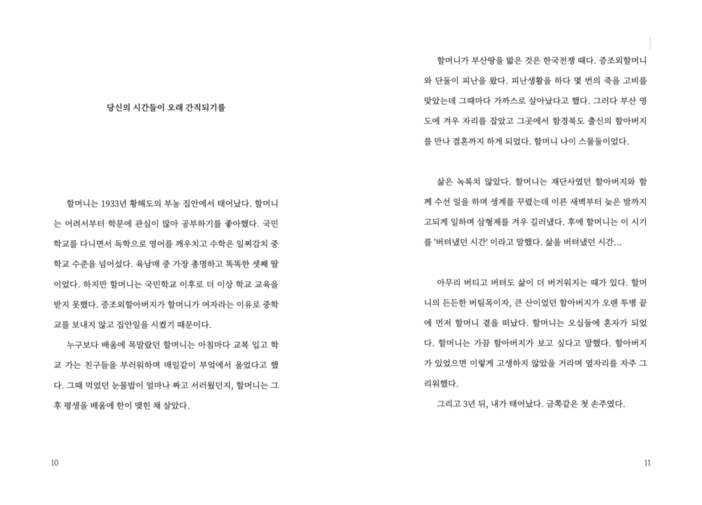 부디, 할머니의 시간이 오래 기억되기를 간절히 바란다.