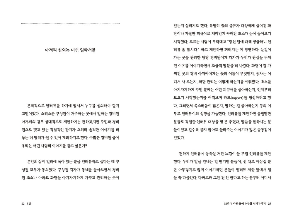 '경비원의 세계를 경비원의 시선으로 경험하는 일'에 대하여