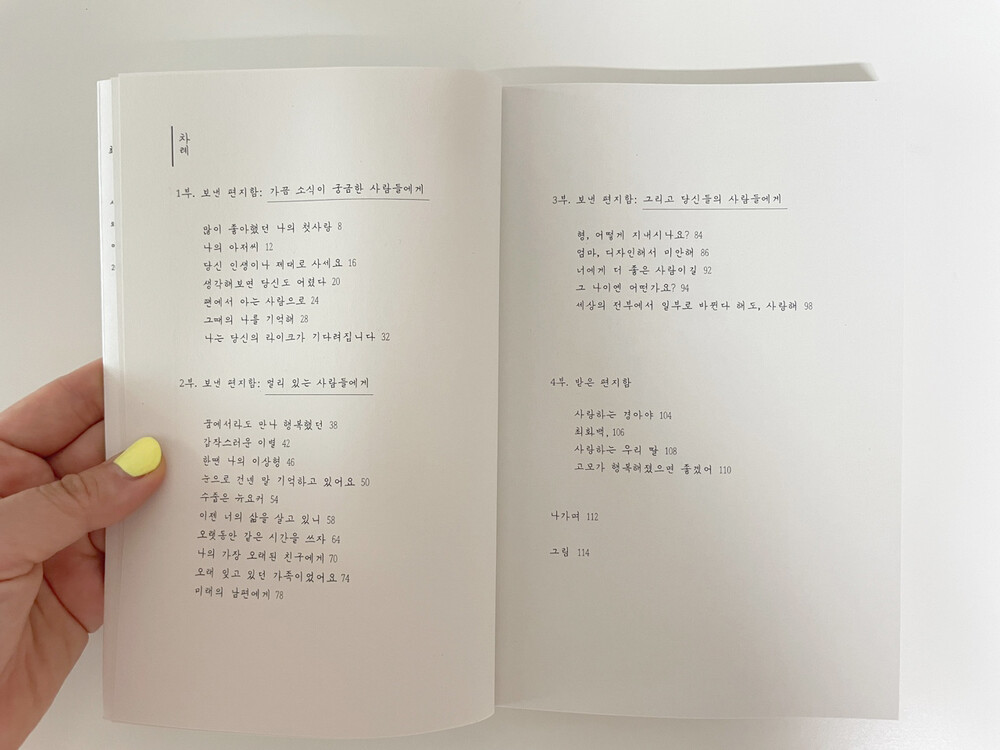그리고 참여자를 모집하여 받은 '당신들의 편지'로 구성되어 있습니다.