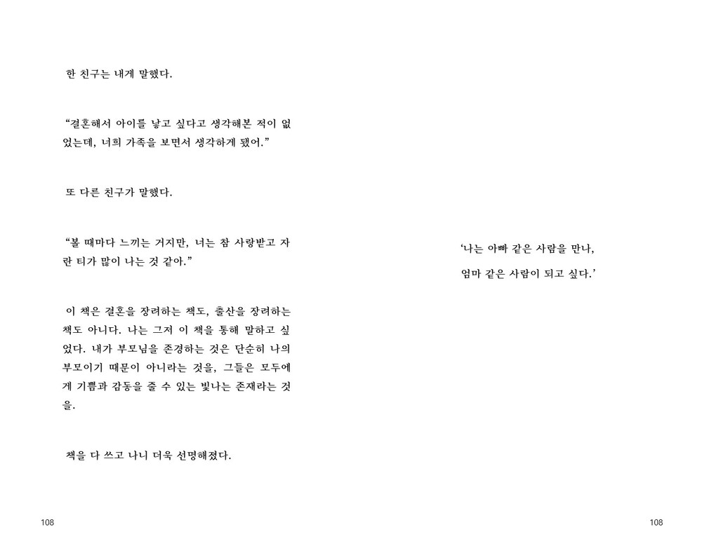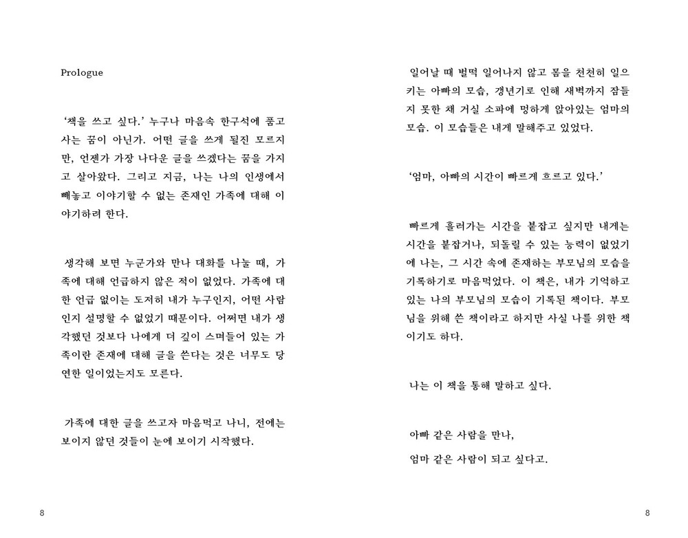 또한 책을 읽게 될 독자 여러분들도 책을 통해, 각자의 부모님을 떠올릴 수 있는 시간이 되길 바랍니다.
