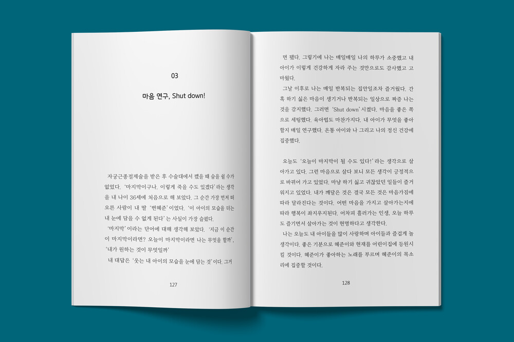 표지 이니셜 “M"은 ”Mom(엄마)“를 상징하고 있습니다.