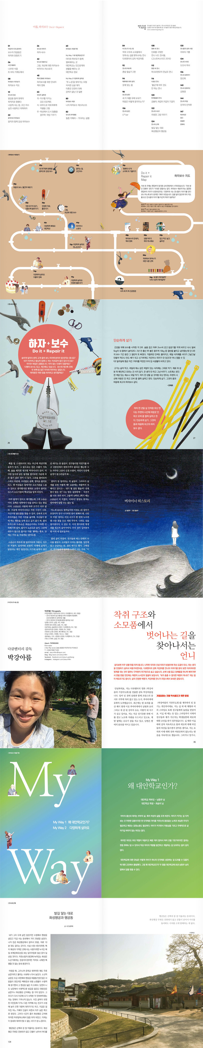 음악과 함께 하는 감성하자보수, 책과 영화가 안내하는 하자보수, 교육 하자보수 ‘대안학교’의 이모저모와 대안학교에 대한 정보를 집대성했습니다. 특집만이 아니라 고정칼럼 ‘언니의 성과 사랑’에서는 ‘자위의 기쁨’을 다루고 있습니다. 자위가 뭐냐고요? 방법이 궁금하시다고요? <언니네 마당>에 그 답이 있습니다. ‘페루애의 여자생각’에서는 옷에 맞는 몸을 강요하는 사회에 대한 고찰을 통해 사회적 하자를 엿볼 수 있습니다. ‘불금’에 아무것도 안 하고 집에서 잉여로운 주말을 보내는 언니의 이야기, ‘언니의 덕질’에서는 만화덕후로 살아가는 언니의 과거, 현재가 유쾌하고 상쾌하게 담겨있습니다. ![]()