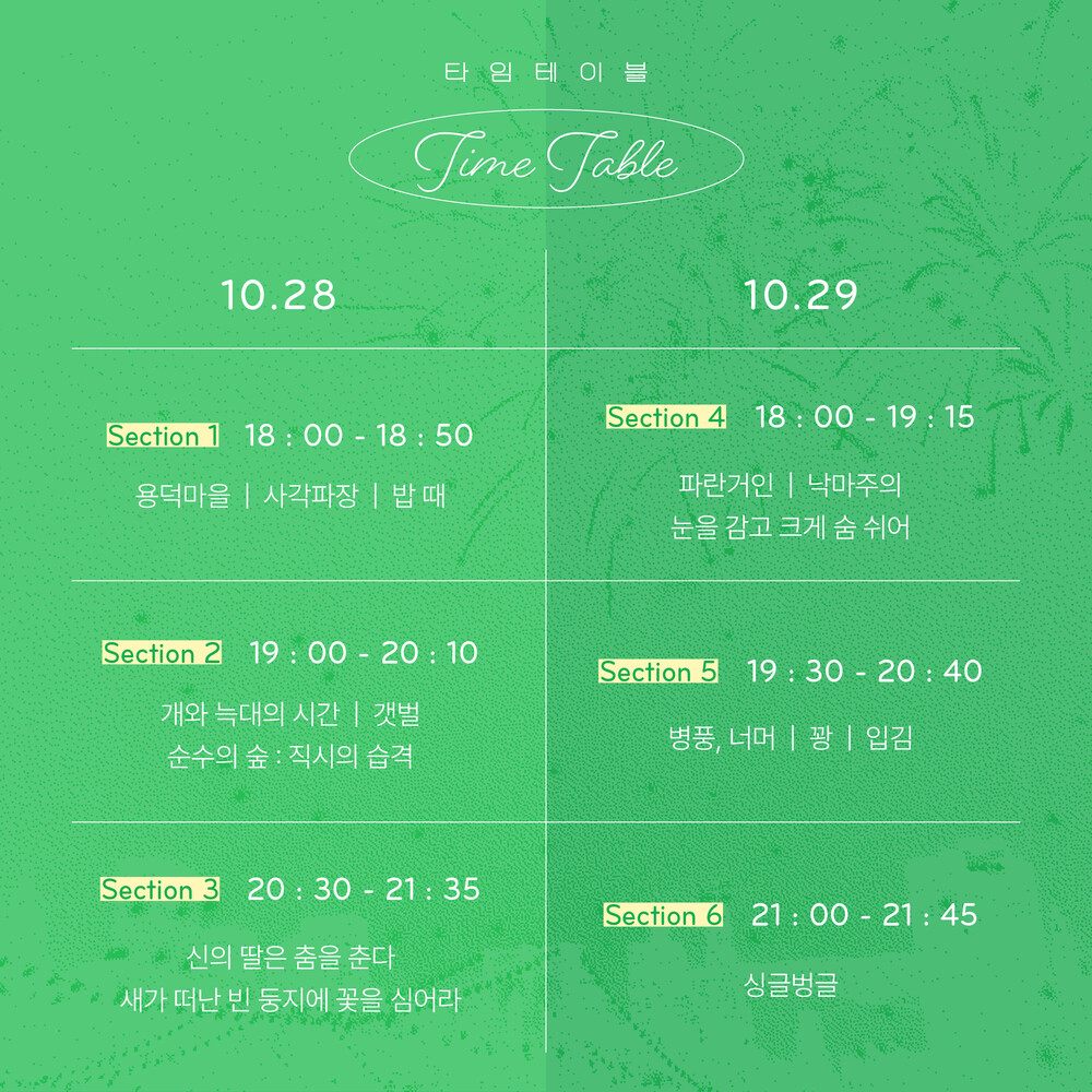 노을장 – 10월 28, 29일 10시부터 ~ 18시까지, 10월 30일 10시부터 ~ 17시까지