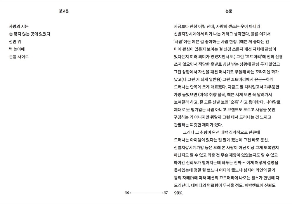 <거의 모든 경우의 수: parlando>은 짧은 문장부터 긴 글까지, 저자의 글을 모은 책으로, 세상에 존재하는 '거의 모든' 글의 종류를 모아놓은 형식을 띠고 있다. 시, 소설, 생활문, 논설문, 편지글, 일기에서부터 가사, 메모, 표어, 설화, 소문까지, 다양한 말과 글의 범주 안에 때로는 엉뚱하고 때로는 진지하고 솔직한 글들이 자리한다. 서로 관련 없는 듯한 이 각각의 점들은 닷투닷(dot-to-dot) 놀이처럼 이어져 나름의 별자리를 만들어 낸다.