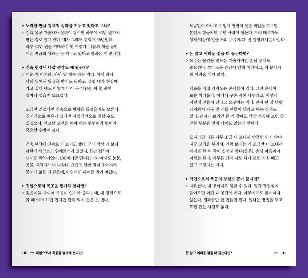 ▷ 직업으로서 목공을 평가해 본다면?