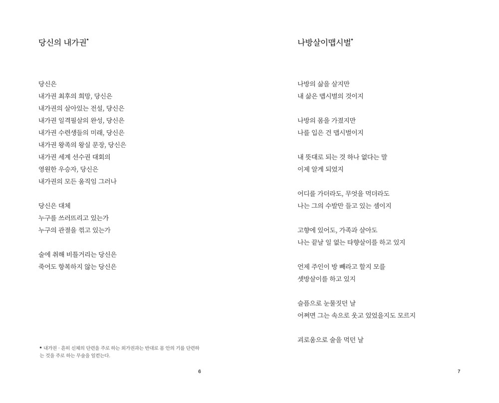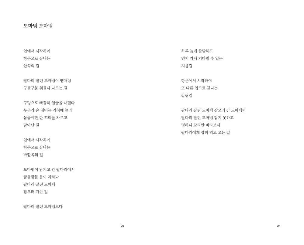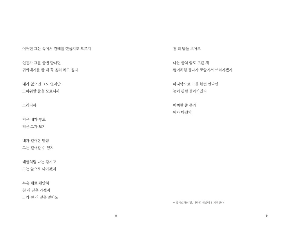 누군가가 씹다가 뱉어 버린 껌 위에 납작하게 붙어 있고한 입 베어 물면 과즙과 함께 입안 가득 고일 것 같은 달콤함은