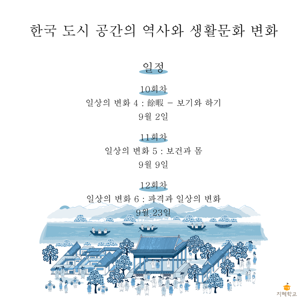한국 도시 공간의 변화에 따라 우리 일상적 삶의 변화를 주제별로 알아봅니다!